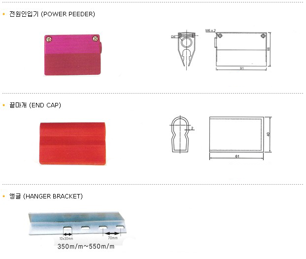 주행, 횡행, 크레인 설치시 사용하여 각종 전기기기의 전원공급 장치로써 SYSTEM의 합리적인 운용에 효과적이며 CABLE 배선방식에서 탈선 화재위험을 전면 개선해 능률을 높이고 안전성, 내구성, 경제성을 포함한 우수한 작품입니다.